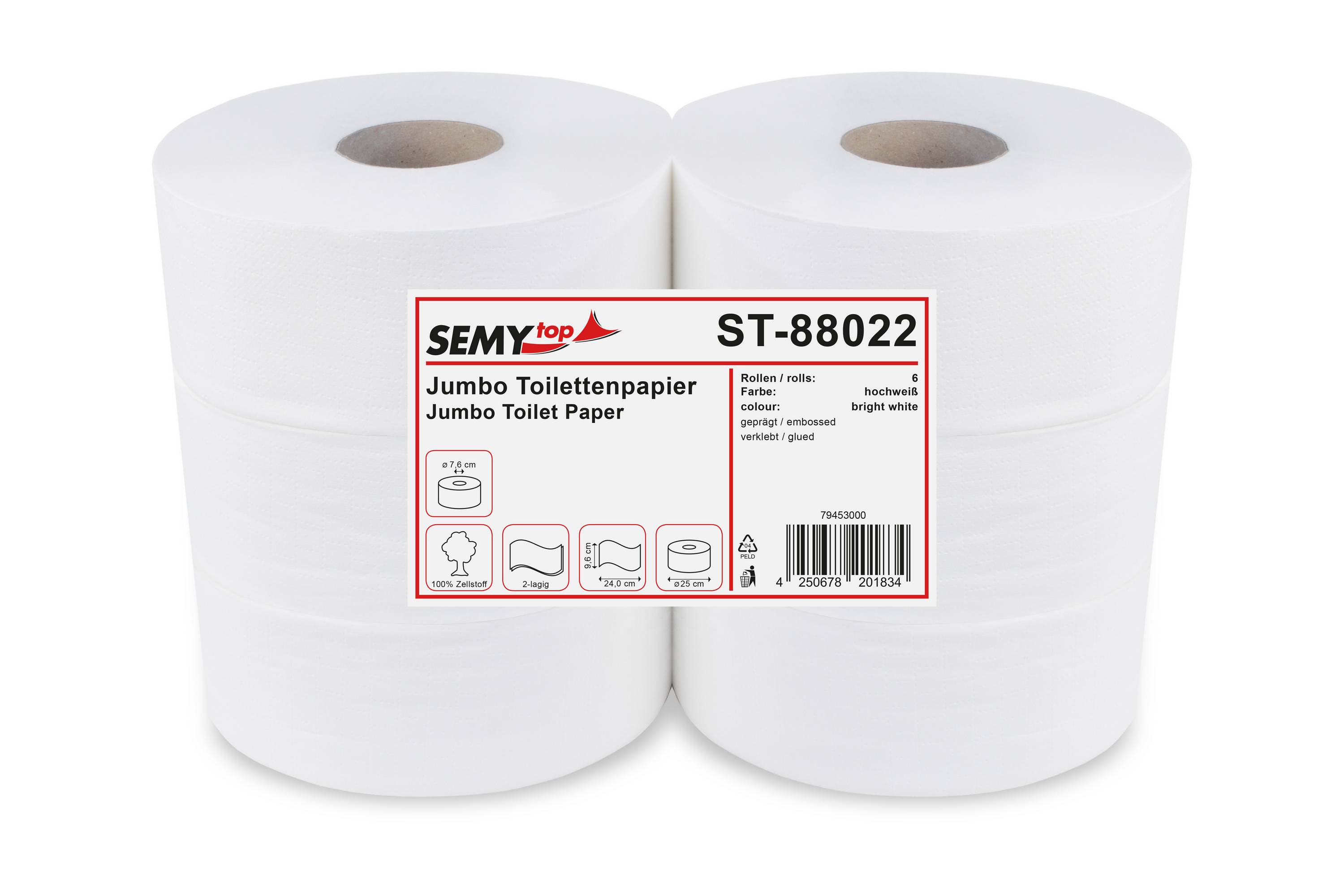 Jumbo-Toilettenpapier Zellstoff hochweiß 2-lagig Ø 25 cm 6 Rollen