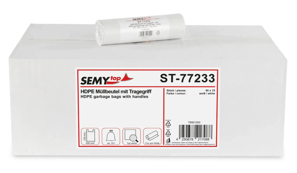 Müllbeutel HDPE weiß mit Tragegriff- 35 Liter 900 Stück
